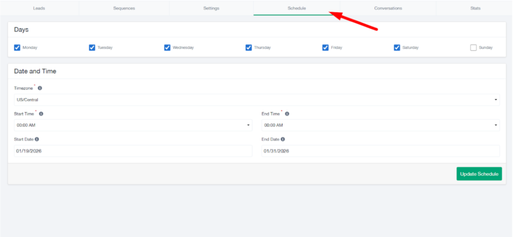 - Messages will only be sent within the scheduled time window.