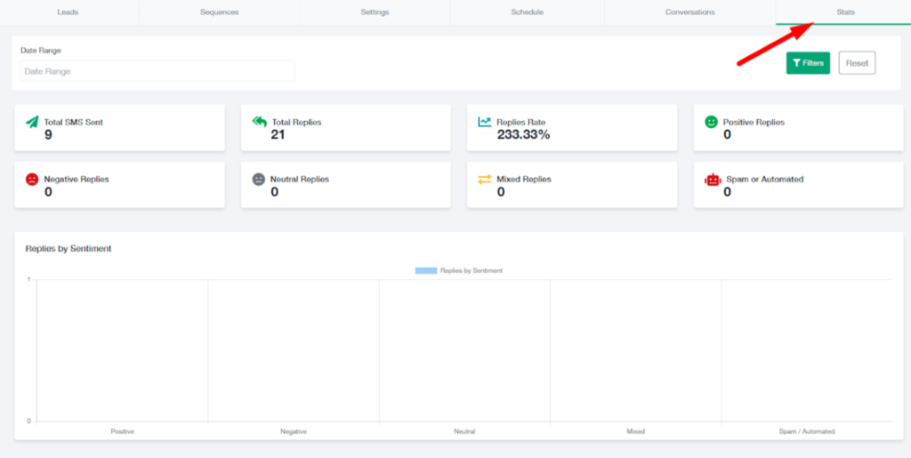 - From the dashboard, click on the SMS tab.