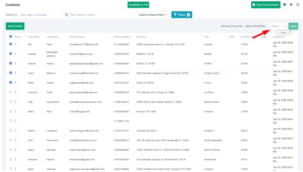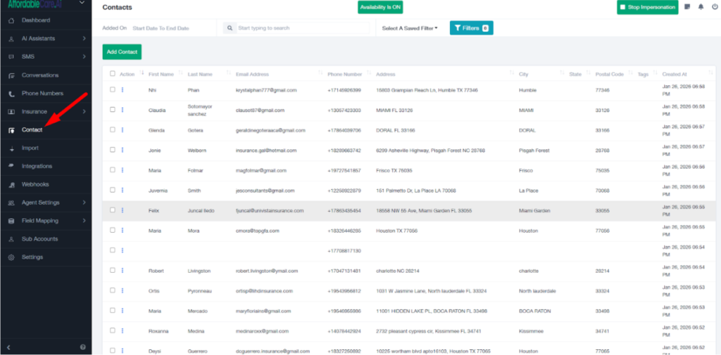 - Go to the Contacts tab in the Agent Portal.