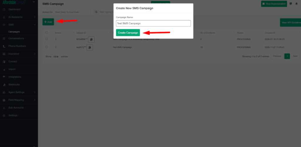 2. Creating an SMS Campaign #