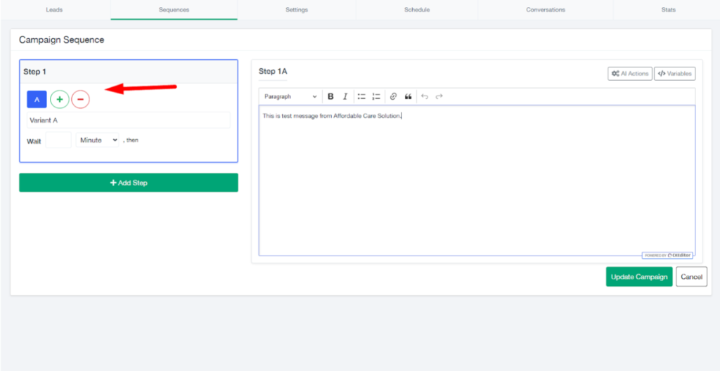 - If you add only one SMS, then all leads will receive the same message.