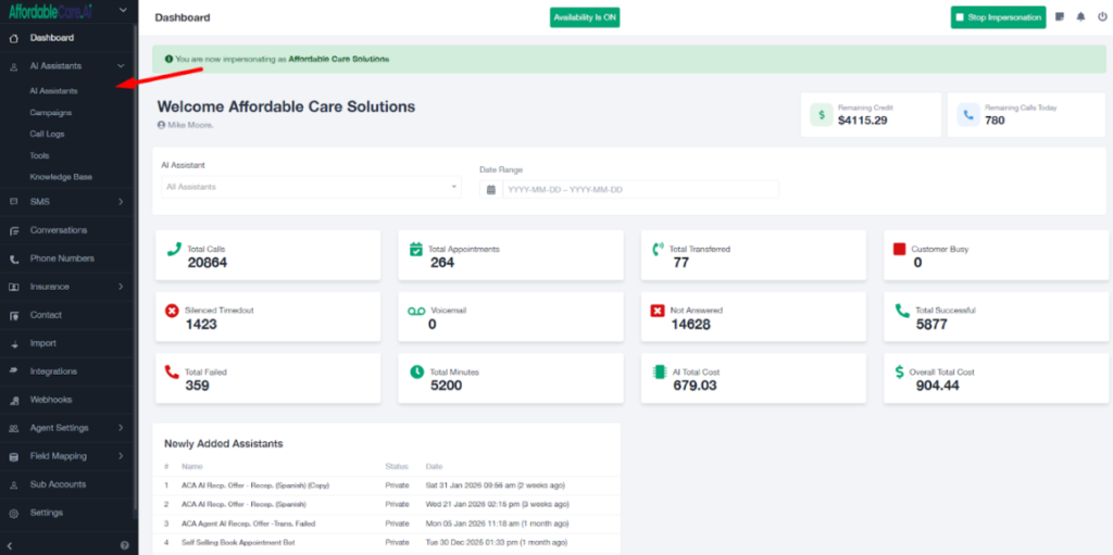 - After successful login, you will be redirected to the Agent Portal Dashboard.
